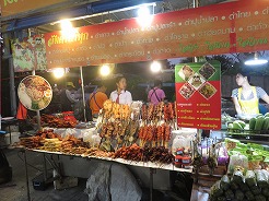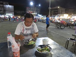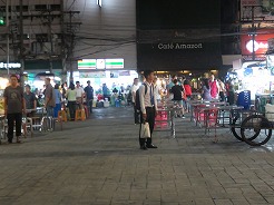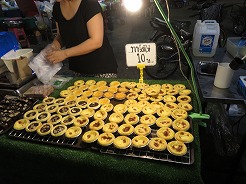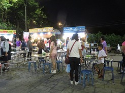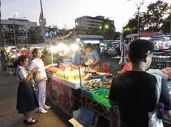 | 公園の前に屋台が出るので17:50夕食を・・・18:00食事中急に皆が起立、国歌が流れた・・・ おやつと、パイナップル、ジュースを買って18:30ホテルへ・・・ |