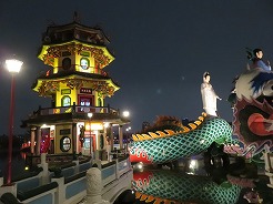 | 17:50〜18:20 真っ暗の中観光地に到着したが約20分の自由見学のみで終了・・・昼間に見るべき観光スポット、10年前に来ていたが残念・・・蓮池潭の九曲橋、春秋閣、五里亭 | ||