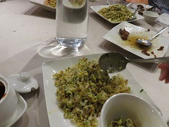 | 夕食がついていないので夕食付きのオプショナル(23時ころ帰着)はやめてはツアー全員で円山大飯店のダイニングルームで8品注文の夕食会を・・・結局15%引きで一家族3500円ほど | ||